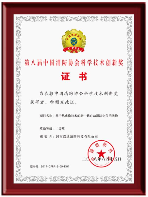 河南聯(lián)縱消防科技有限公司位于鄭州市高新區(qū)電子電器產(chǎn)業(yè)園,擁有專家團隊和標準化工業(yè)廠房和實驗場,是一家以大空間智能消防水炮為主導的集科研、開發(fā)、生產(chǎn)、銷售、服務于一體的高科技消防設備制造企業(yè)。 公司以“極致產(chǎn)品安天下”為宗旨,針對市場上普通消防水炮精準度差、易誤噴、不能實時追蹤動態(tài)火源、適用場所受限等缺陷,歷時6年,成功研發(fā)出了第II代自動跟蹤定位射流滅火裝置系列產(chǎn)品。公司已通過了IS09001:208、IS014001:2004、OHSAS18001:2007、GB/T29490-2013等體系認證,獲得專利授權三十多項,取得國家級高新技術企業(yè)、消防行業(yè)誠信示范單位、消防科技創(chuàng)新企業(yè)、第八屆中國消防協(xié)會科學技術創(chuàng)新獎,產(chǎn)品通過國家消防裝備質量監(jiān)督檢驗中心檢驗,并獲得了公安部消防產(chǎn)品合格評定中心頒發(fā)的消防產(chǎn)品認證證書。 第II代自動跟蹤定位射流滅火裝置采用熱成像+捷聯(lián)制導技術,集自動報警、動火追蹤、自動滅火、視頻監(jiān)控四位一體,具有可靠性高、精準度好、性能穩(wěn)定、安裝操作方便、智能化程度高、應用環(huán)境廣泛等特點。公司產(chǎn)品自上市以來,已經(jīng)有數(shù)萬臺產(chǎn)品被安裝在了數(shù)千個工程項目中,先后參加了幾十次國內外消防展,贏得了各界人士的一直好評,被央視《我愛發(fā)明》欄目發(fā)現(xiàn)后,央視編導組對產(chǎn)品性能進行了數(shù)十天的實驗和拍攝,先后在以下節(jié)目播出: CCTV-10《我愛發(fā)明》之“烈火哨兵”、CCTV-10《實驗現(xiàn)場》之“滅火試驗”、CCTV發(fā)現(xiàn)之旅《品質》之“智慧消防 守護一生”、 CCTV-17新改版《我愛發(fā)明》之“智能水炮”...
